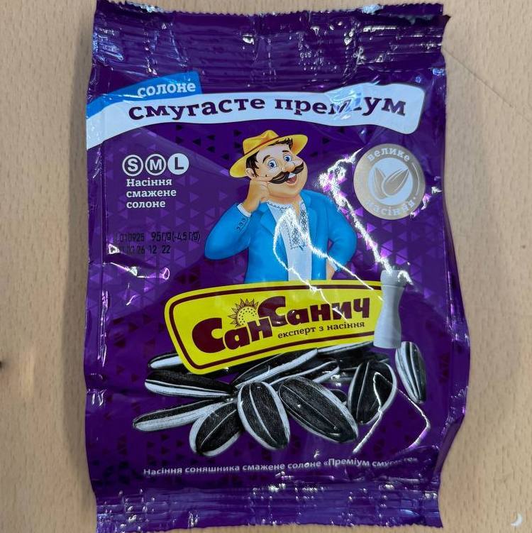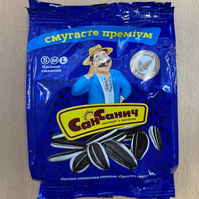 Насіння сонях смажене "Преміум смугасте" Сан Санич, 95г( до бочк)