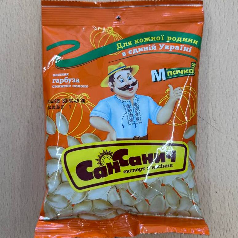 Насіння сонях смажене солоне "Преміум смугасте" Сан Санич, 95г ( до бочк)